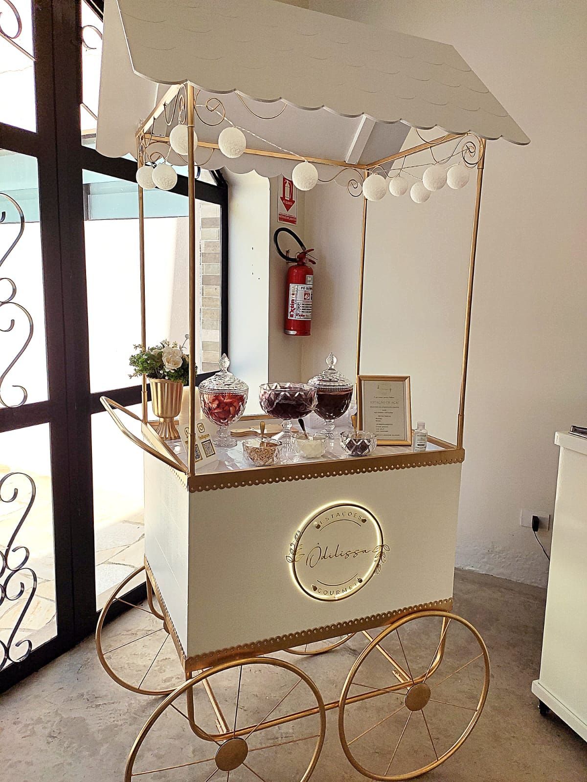 Além disso, temos 3 carrinhos charmosos que levam ainda mais beleza e praticidade para seu evento, adaptando-se ao estilo da sua festa.
